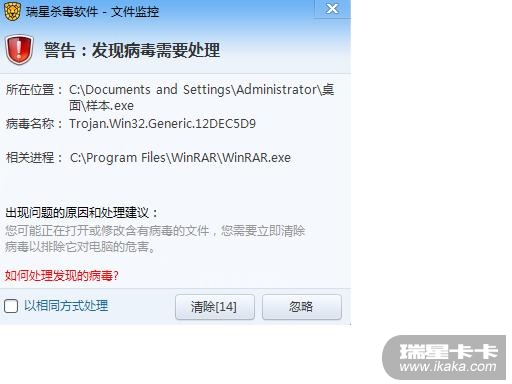结果:解压时瑞星没有报警 ,只有扫描才报