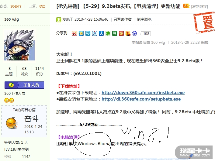 【瑞星作为微软合作伙伴应该不用用户提供win8.1下载地址了吧