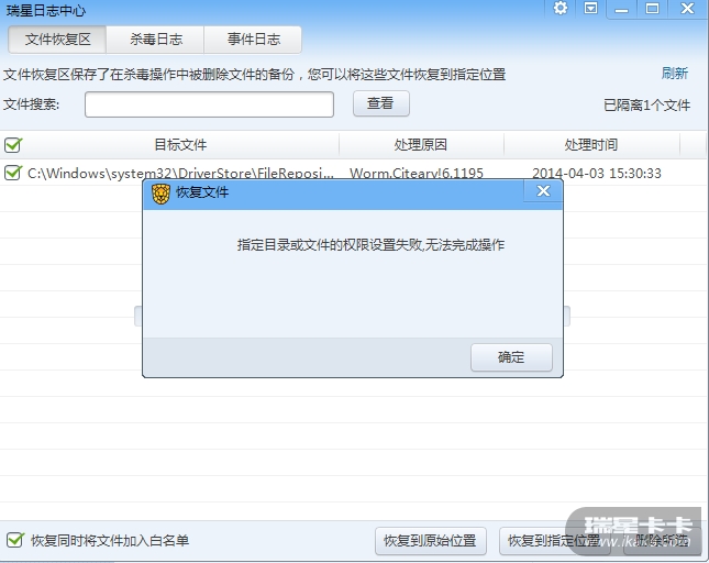 这个文件不知道咋的恢复了,再次扫描没有报毒,但是4月3号扫描的在隔离区还是有啊