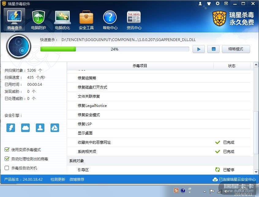 例行“快速查杀”时,出现了以下问题。(如图所示)