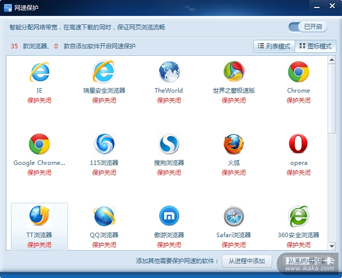 01、在V17防火墙中,必须去掉“网速保护”不常更新频率高的浏览器同时也要更新最新浏览器的图标;