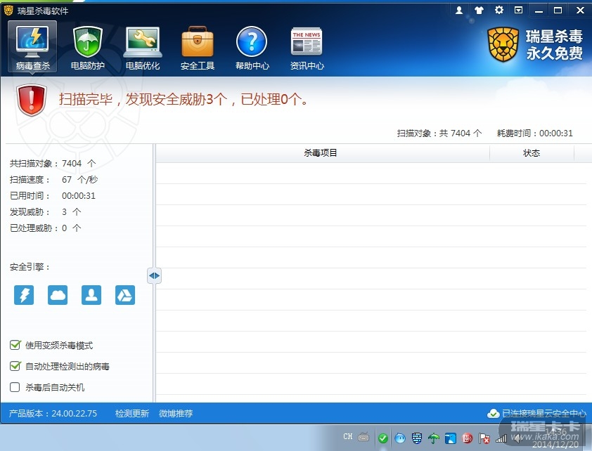 快速查杀时,发现有片儿空白的地方。(如图所示)