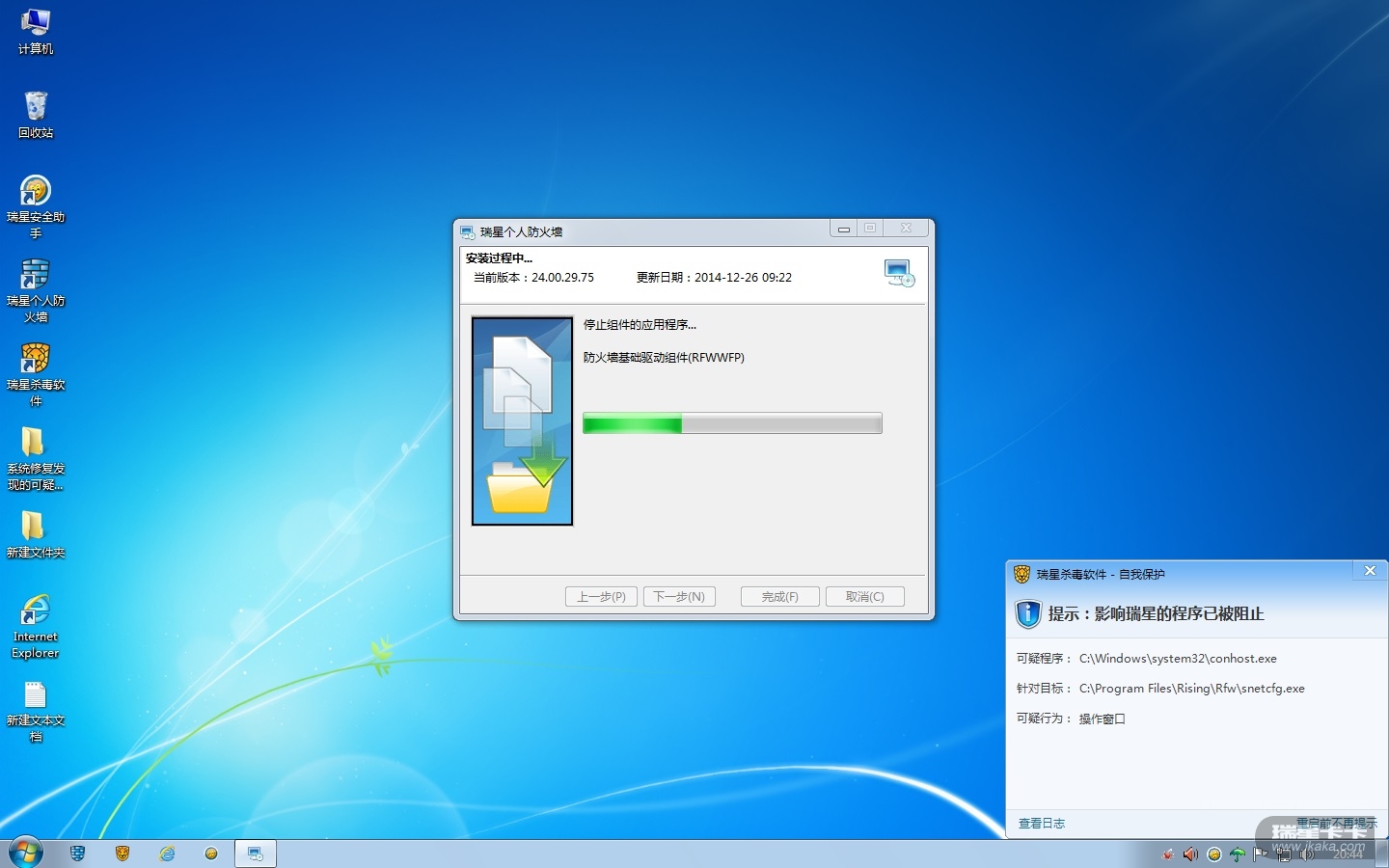 先安装杀毒后 在安装防火墙 杀毒 会提示自我保护 (你们可以试验修复下就知道了)