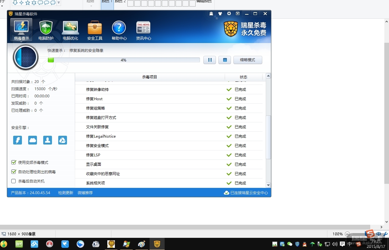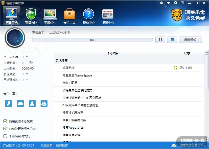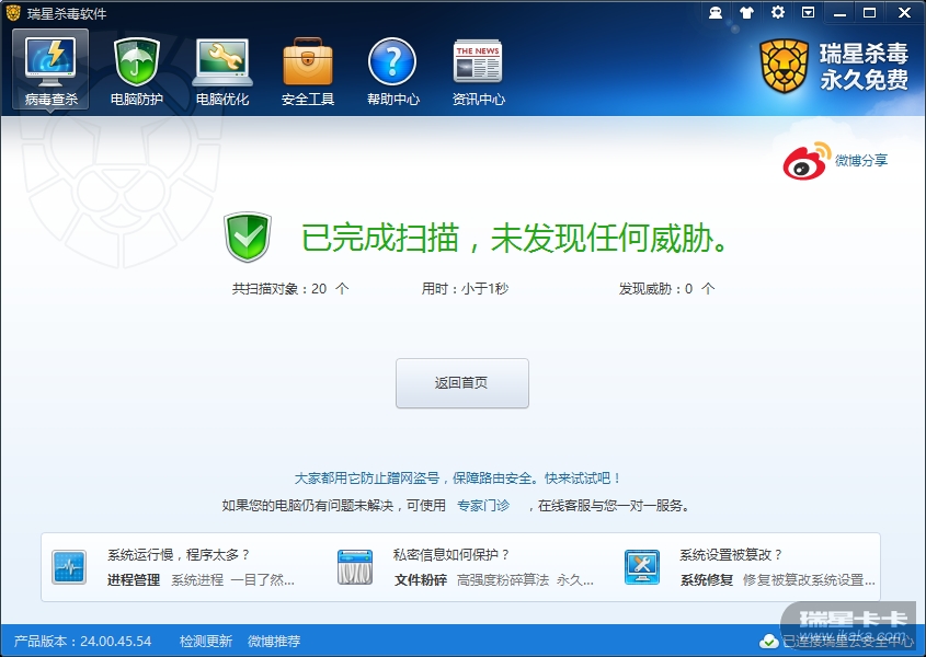 关闭主程序,打开杀毒主程序,快捷杀毒,回归第一张图的状态
