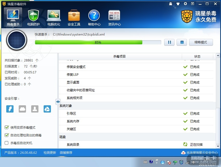 瑞星杀软是默认的设置吗?电脑上是否有其他安全类软件?