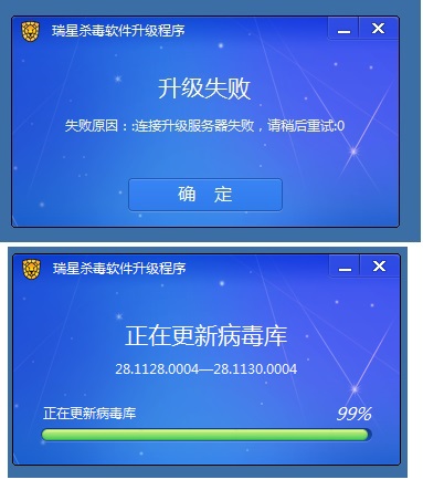 瑞星杀毒软件的产品版本和病毒库版本分别是多少?是升级病毒库的时候提示失败的吗?