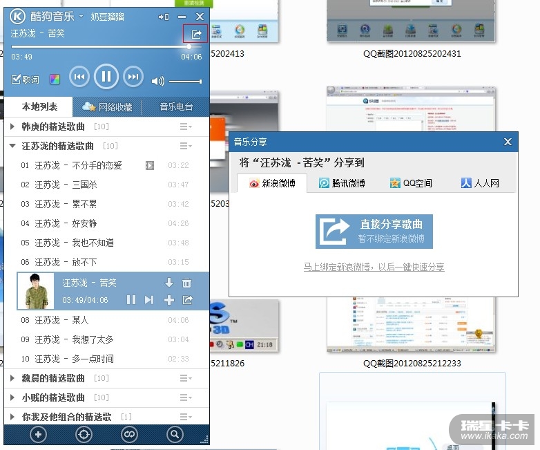 在试用瑞星的时候,看见“微博推荐”的字样,何不做成类似于酷狗分享按钮。(如图所示)