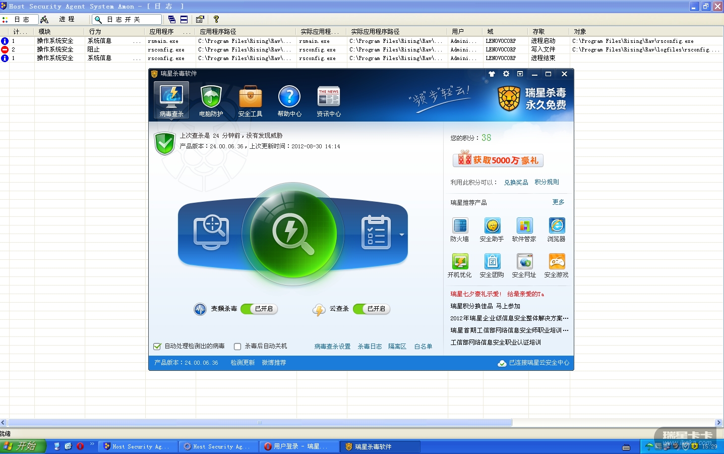 我在CAHIPS 中对C盘的读写删操作设置了如下限制(图1)。V16的 rsconfig.exe并未放到受信组中,因此,点击V16的“病毒查杀设置”时肯定会遇到问题。