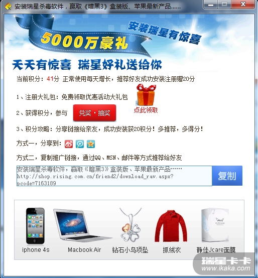 不行就加个选项,接受瑞星最新信息推送,默认开启,呵呵。