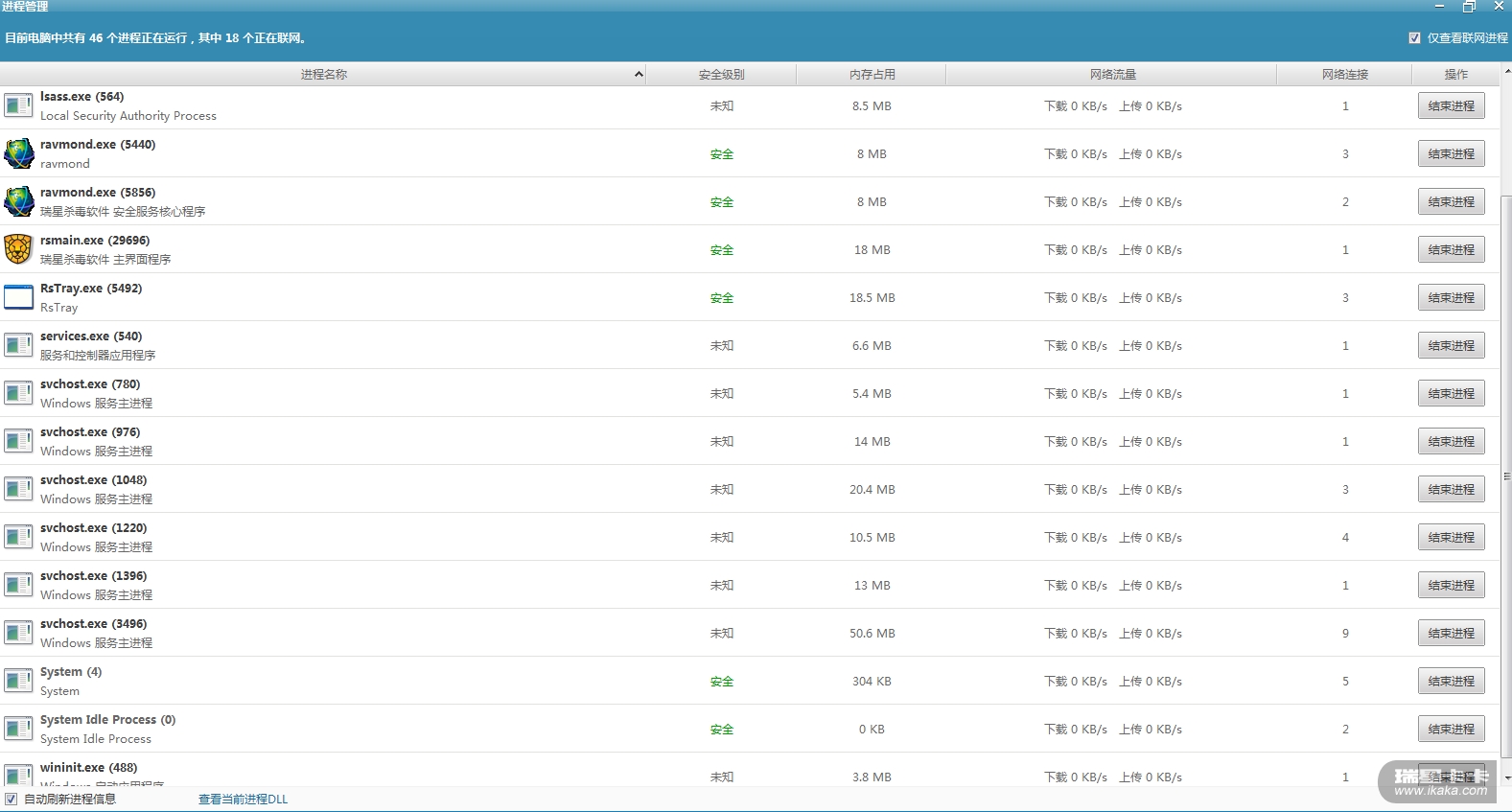 V16安全工具中的进程管理器的安全级别问题,明明是系统主要进程,怎么还说安全“未知”呢?还有希望对每个进程都能有详细的中文解释,便于发现“漏网之鱼”——假如一厉害病毒过主防和监控,它也用系统主要服务进程名称加载呢?如果对每个进程(无论是否联网)都有详细中文说明并标示是否为安全,这样用户一看就能看出电脑是否中毒,以便处理。现在真的系统进程安全也未知,那有个模仿系统服务进程的病毒进程加载,怎么分辨谁是真谁是假呢?