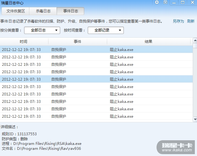 点击瑞星日志中心界面那个倒三角,点备份日志,将日志db文件导出压缩跟帖上传。