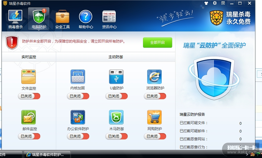 瑞星杀毒软件防护开不了,杀不了毒,卸载重装也没用。但雨伞是绿的,就是里面写的没开启保护。
