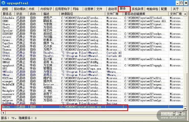可疑文件在系统中创建了文件,注册了服务,瑞星都没有拦截