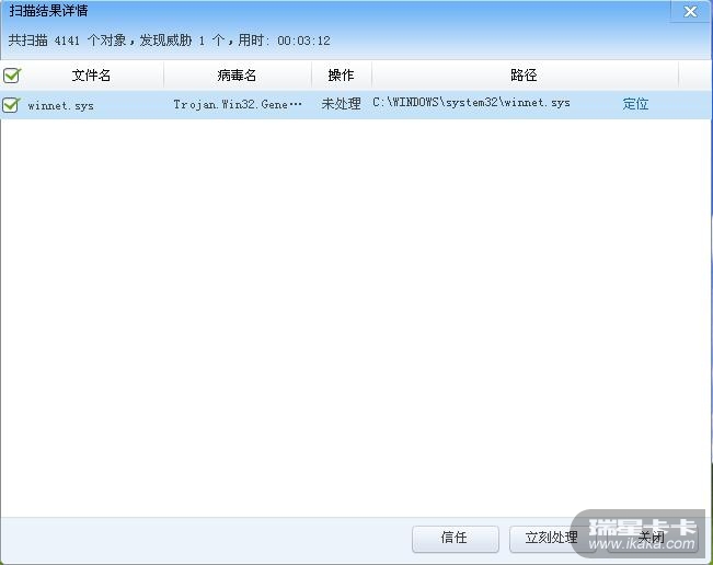 用瑞星全盘扫描时,只发现了一个病毒文件 ,有漏杀~~~