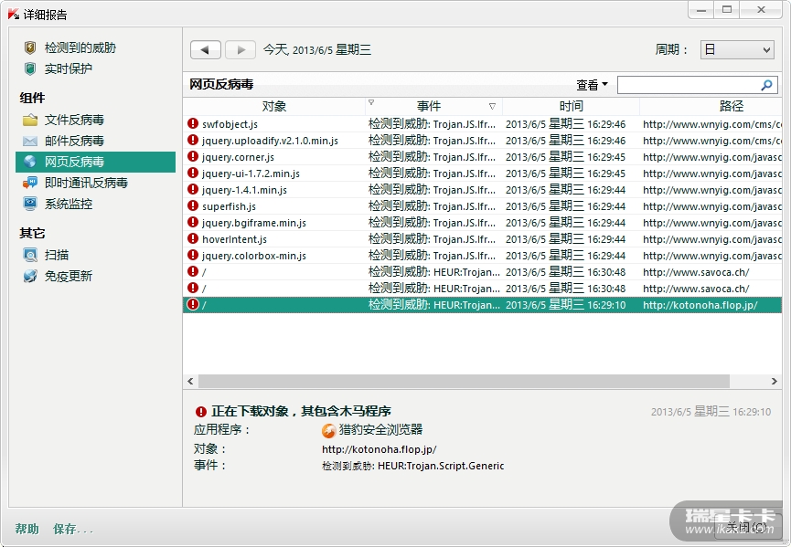 2013-6-4 20:13 [Web Protection] 发现恶意软件