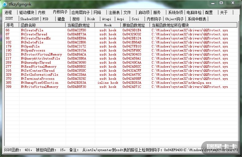 结果:瑞星所有钩子被恢复成功,并且无法自动重新挂上