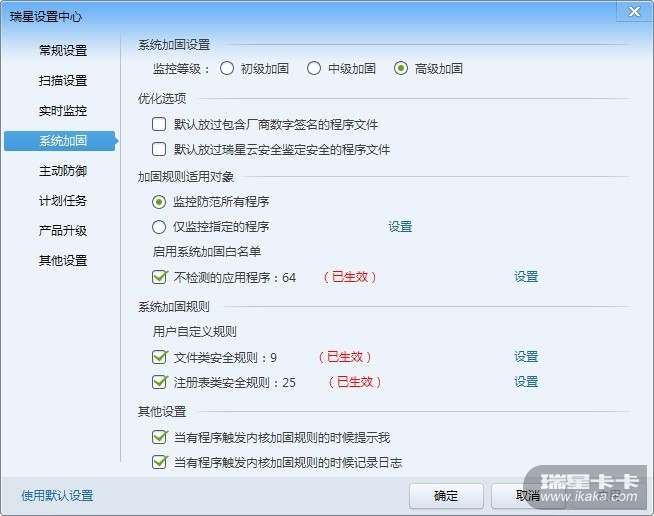 系统加固好像无法拦截通过添加服务项实现开机启动的文件。win7 32位 系统加固等级高,两个默认优化选项没有勾选。