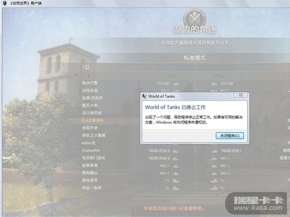 在瑞星杀毒防火墙的电脑上,玩 坦克世界 游戏会出现系统出现问题,程序停止的警告。
