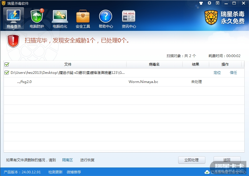 这个压缩包瑞星虽然能查出来,但是却不能显示里面的文件名,也不能直接处理该压缩包,必须解压才行。。。