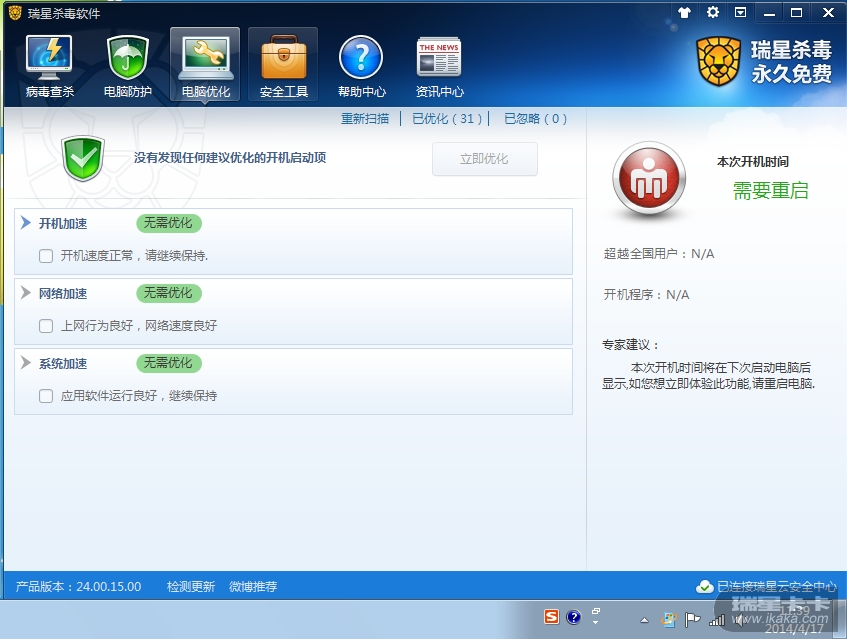 在做任务的时候,出现了电脑优化的问题。(如图所示)