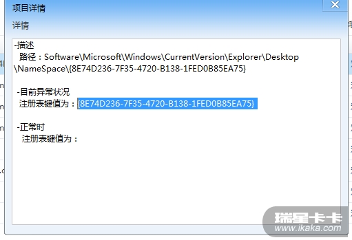 ③由②可知,瑞星系统修复采用注册表比较判定是否正常。。而且过时。那么每次新装Win8.1扫描就会出现未知namespace {8E74D236-7F35-4720-B138-1FED0B85EA75}