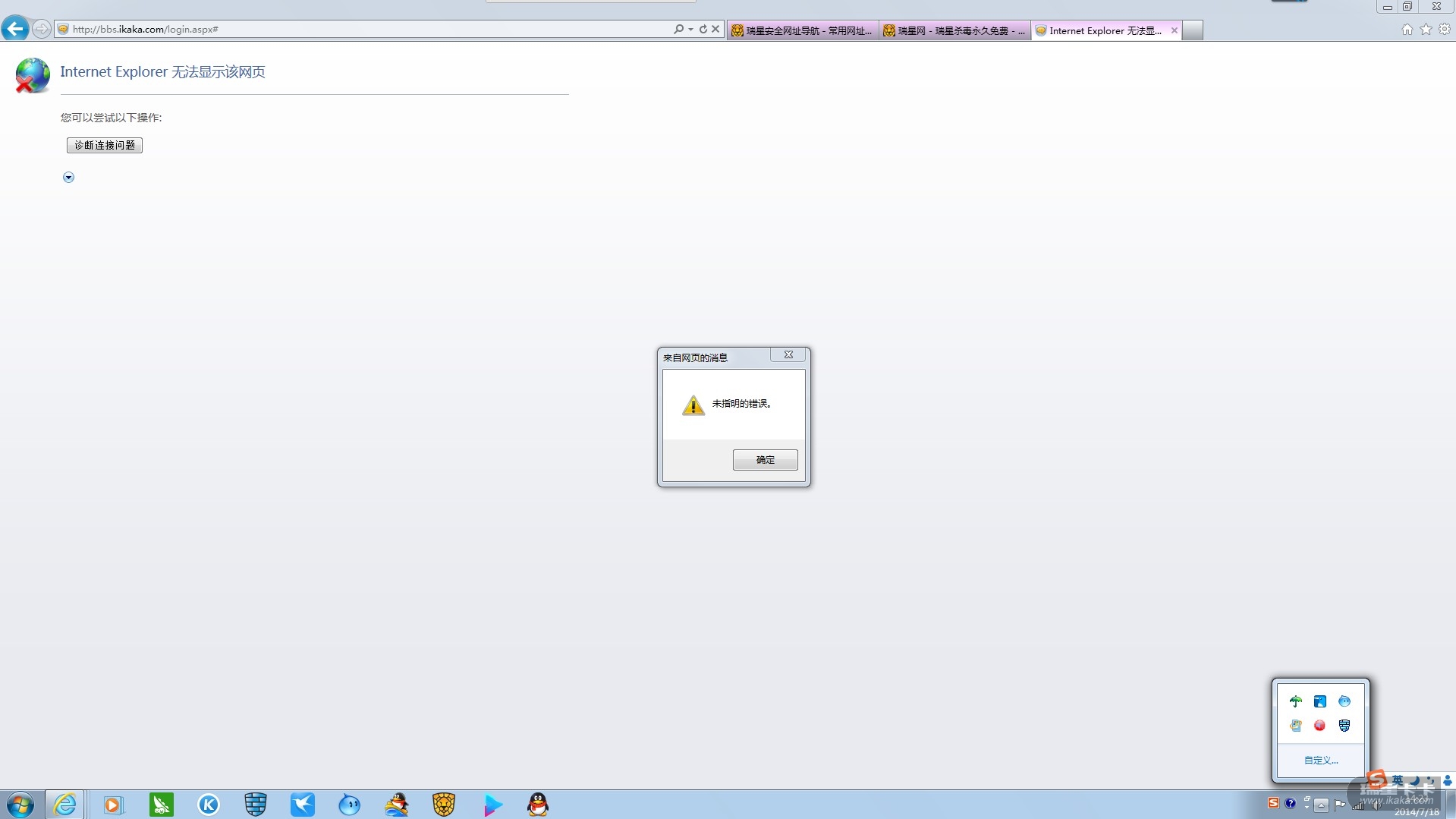 在使用IE9浏览器的时候,出现问题。我怀疑是瑞星的问题。(如图所示)
