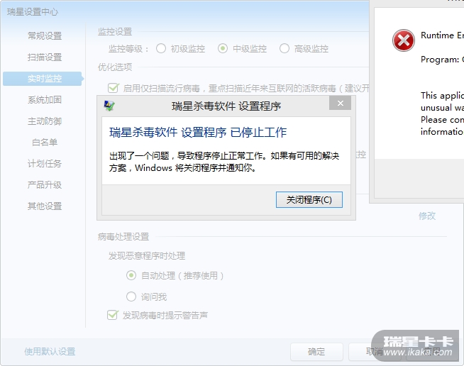 请您暂时关闭瑞星自保,看能否提取ravmond.exe的dump?