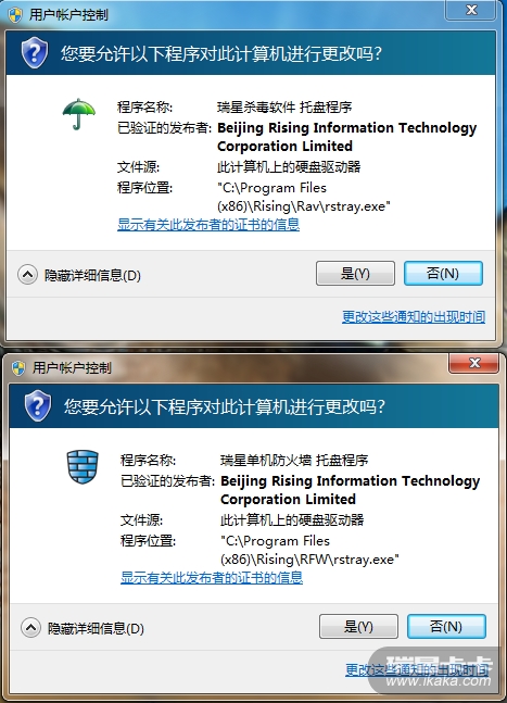 今天一开机就弹出UAC 提示如下(防火墙也一块报了)