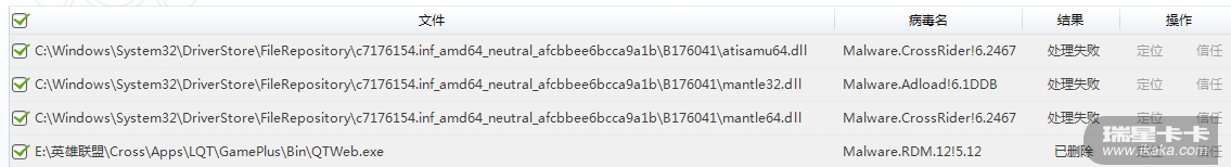 瑞星能扫出病毒 但是却杀不掉自己扫出的那几个病毒 提示处理失败
