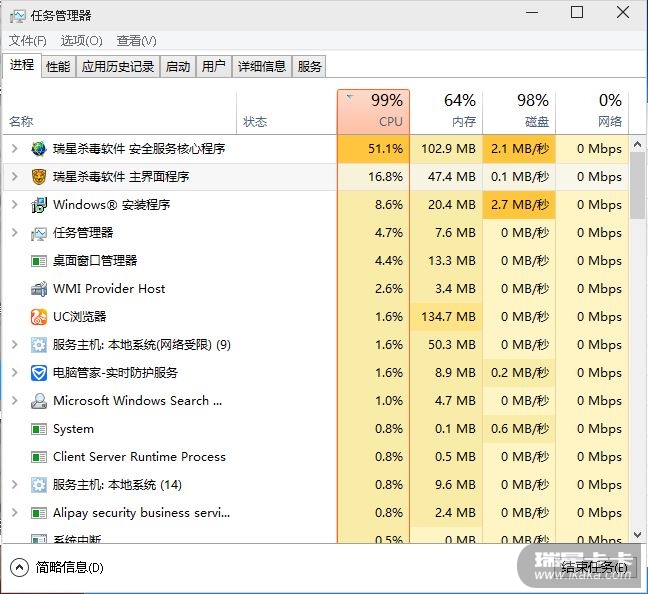 2、设置手动清除病毒,就是取消了自动处理功能 。在点击立即处理过程中 占用 cpu 很高