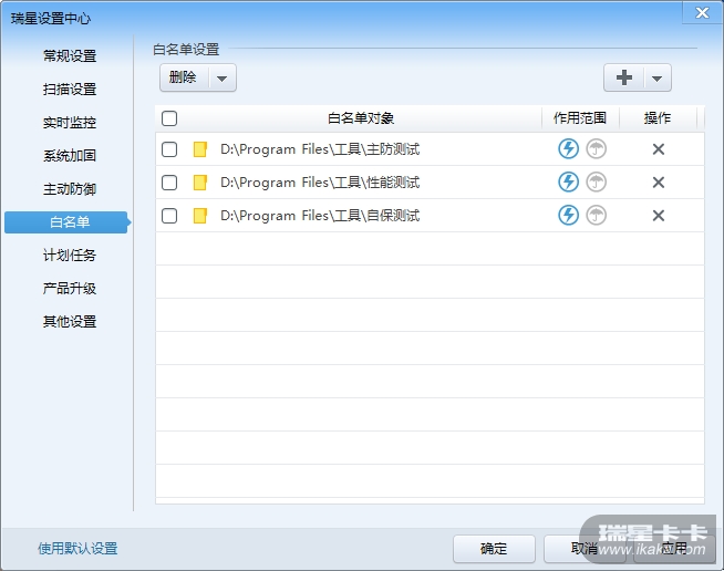 发现只能设置文件白名单 ,而 防御白名单 无法设置