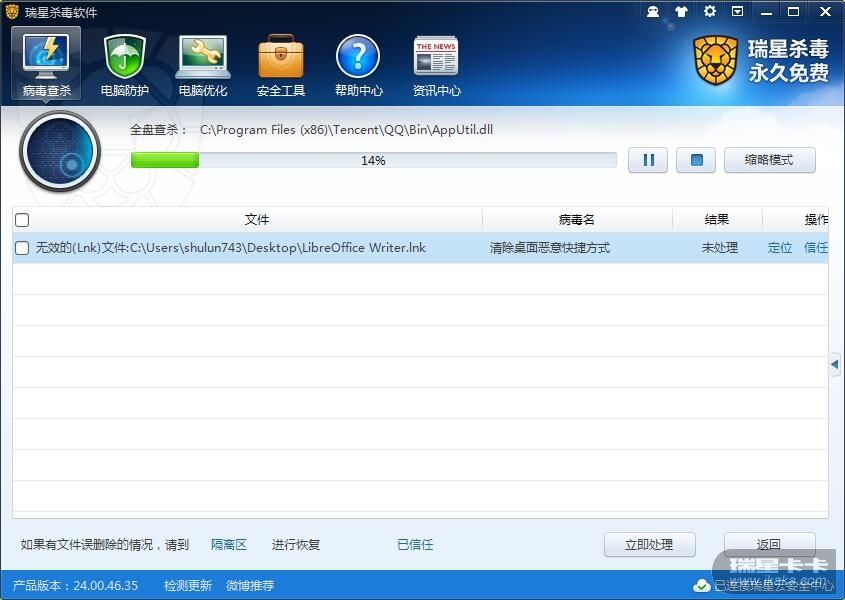 报告 发现 可疑文件 ,libreoffice 的快捷方式无效