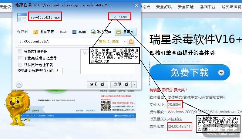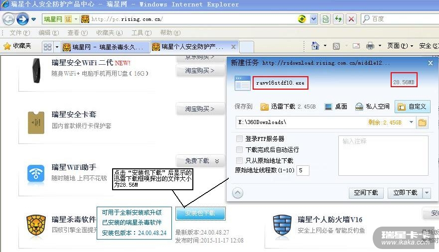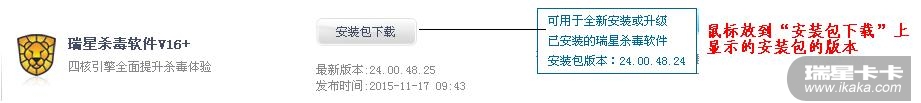 如瑞星杀毒软件V16+ ,用鼠标放到“安装包下载”按钮处可看到如下图片