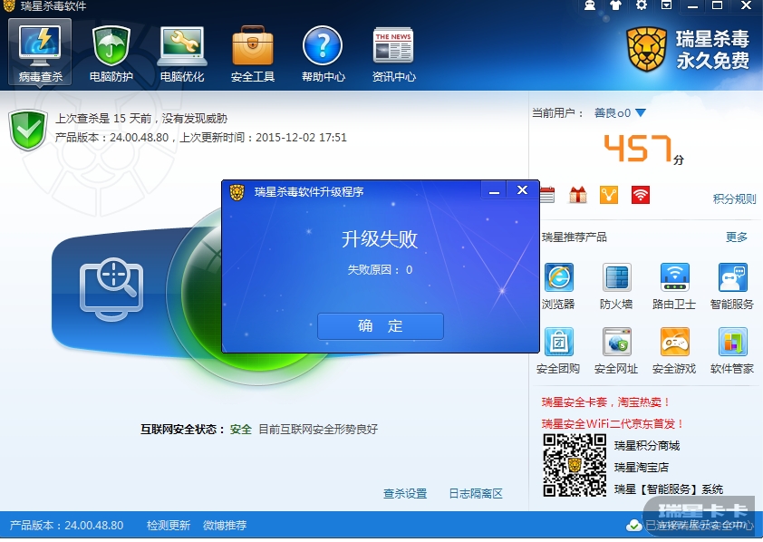 [疑似bug] 瑞星升级失败 升级失败原因0
