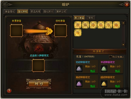 熔炉系统是可以极大提升装备属性,获得更大的属性提升。熔炉系统包括装备强化、强化转移、极品洗练、强化拆分、黑铁合成