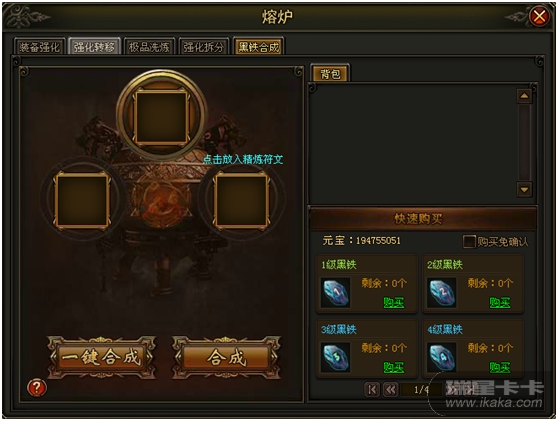 个同级黑铁合成至高一级的黑铁,使用精炼符文可提升合成成功率;