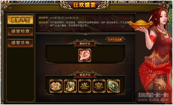 狂欢盛宴期间,极品装备、道具的寻宝获得概率提高