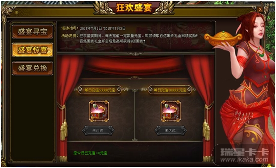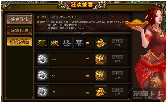 精华来兑换奖励!而活动字“狂”、“欢”、“盛”、“宴”只在天龙宝藏中产出,每天可兑换次数
