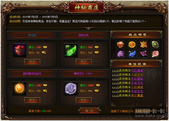 活动期间,将开启神秘商店,超多珍稀道具超低折扣价格,迅速来抄底XXX吧!