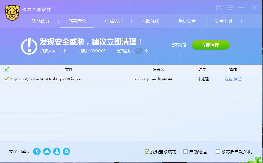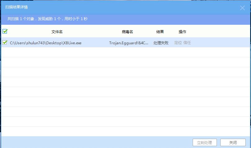 win7-32 下运行病毒,文件监控没有报警,并且系统加固和行为防御也没有任何动作,处理失败