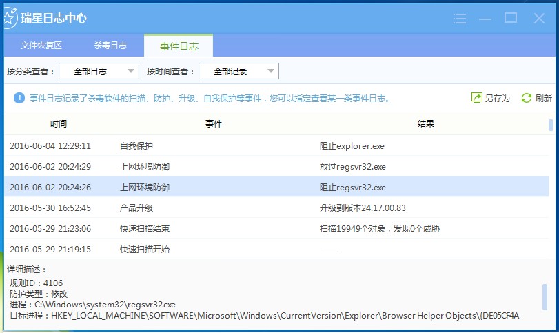 楼主是做了什么操作后出现的?瑞星有弹窗提示吗?现在问题是否还能复现?