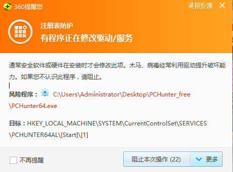 因为发现卡巴 也拦截这种方式(如xuetr加载驱动,或 冰刃加载方式) ,并且卡巴 会提示若这样 加载的话,就会 无法控制 这个软件了