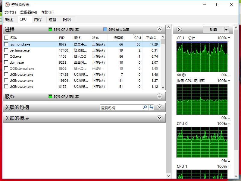 就算是 关闭 瑞星所有防御后 , cpu占用 ,还是降不下来!!!