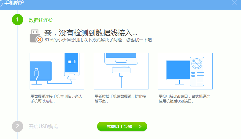 瑞星v17连接手机居然没反应,我已经重装了驱动、开启了usb调式,我是win7系统