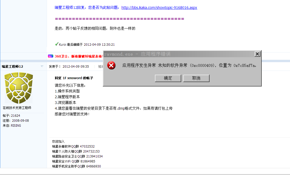 我的瑞星程序发生异常,还删除我的驱动,还写入我的驱动 ,