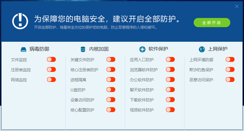 我的瑞星被强制关闭了所有的自我保护,该怎么办