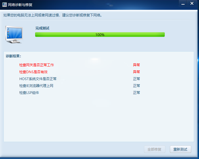 [其他] 网络诊断不能修复