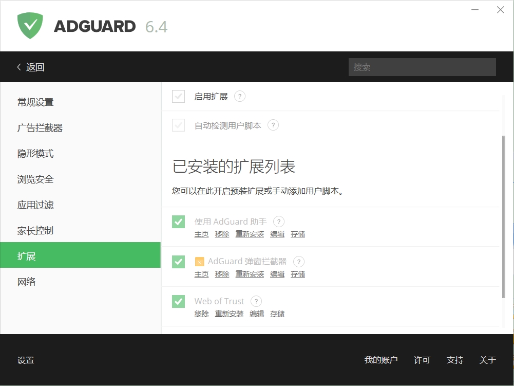 关掉扩展之后还是会出现卡在local.adguard.com的情况,只不过能肯定打开网页,但还是要刷新,卸掉了V17就毫无卡顿访问网页。是不是流量过滤的原因?我看瑞星有进程过滤流量,adguard也有。
