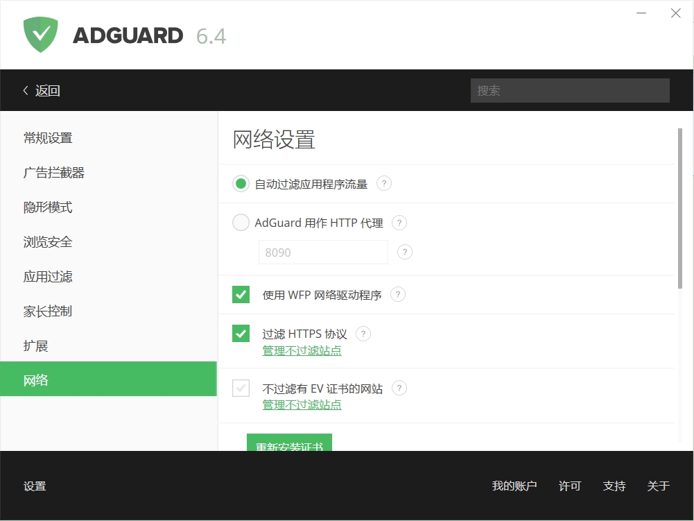 如图,我用浏览器打开一些网页,有时会出现迟迟打不开的情况。我现在电脑里装了AdGuard 6.4和V17,装了V17后开网页就会出现这个样子,卡在local.adguard.com。所有保护全部关掉也不起作用,adguardsvc.exe加入放行规则也一样。这是冲突吗?