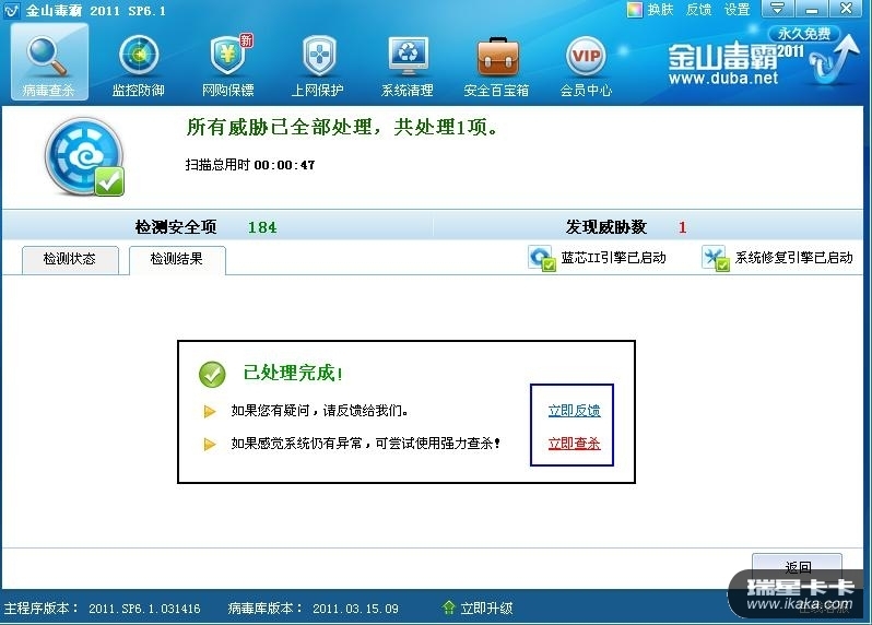 回复:扫描完成后 ,不如 金山 360提示完善!!!